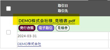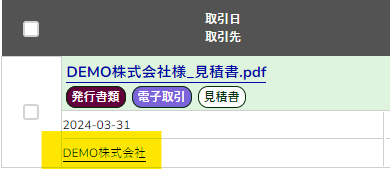登録した取引先は、書類一覧で取引先名をクリックすることで参照できるようになります。