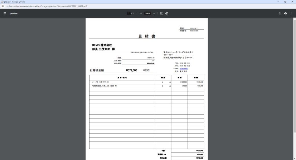 書類一覧のファイル名をクリックすることで、通常のプレビューではなく、保存した書類のみのプレビューが別ウィンドウで表示されます。
